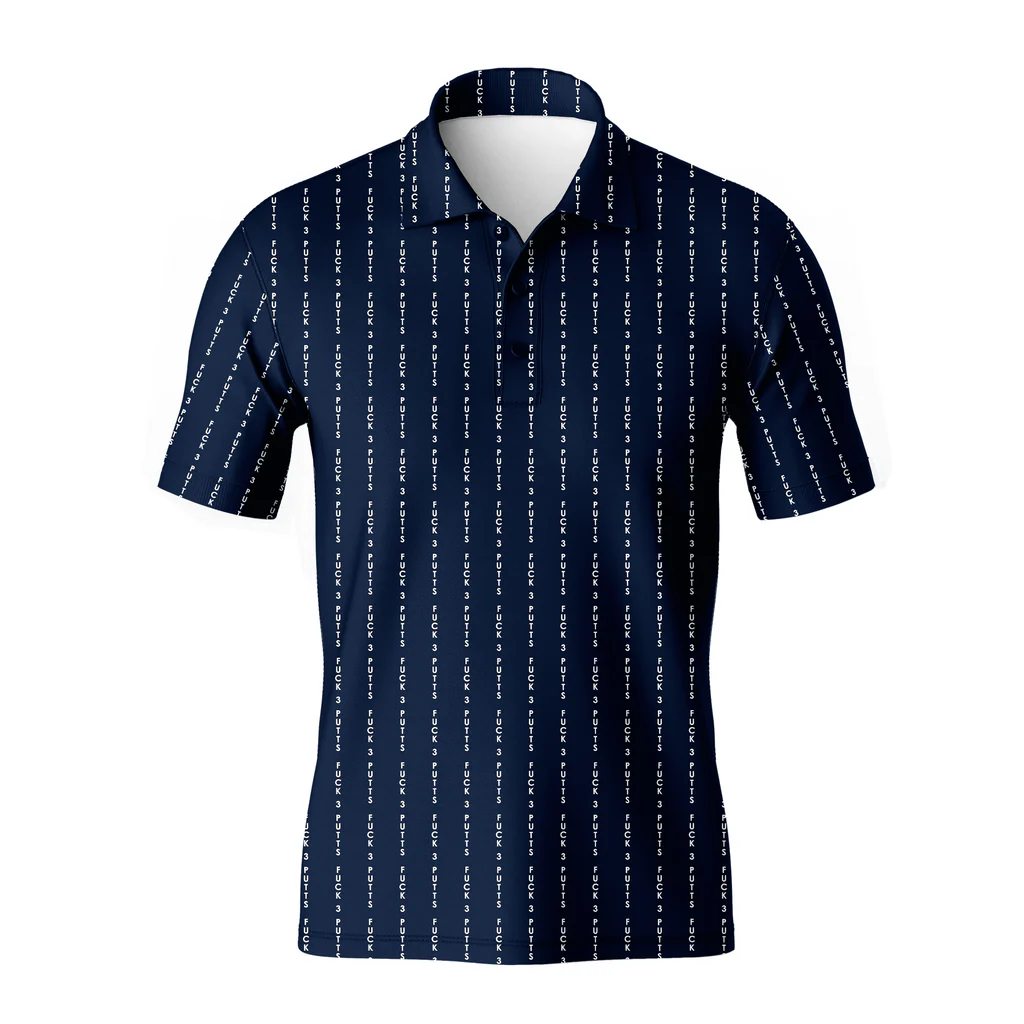 เสื้อโปโลกอล์ฟแขนสั้นโทนสีน้ำเงินเข้ม เพิ่มความโดดเด่นด้วยลายพิมพ์แนวตั้งสไตล์โมเดิร์น ให้ลุคสุภาพ เท่ และดูเป็นมืออาชีพ เหมาะทั้งใส่ออกรอบกอล์ฟและใส่ลำลองในวันทำงานหรือวันพักผ่อน